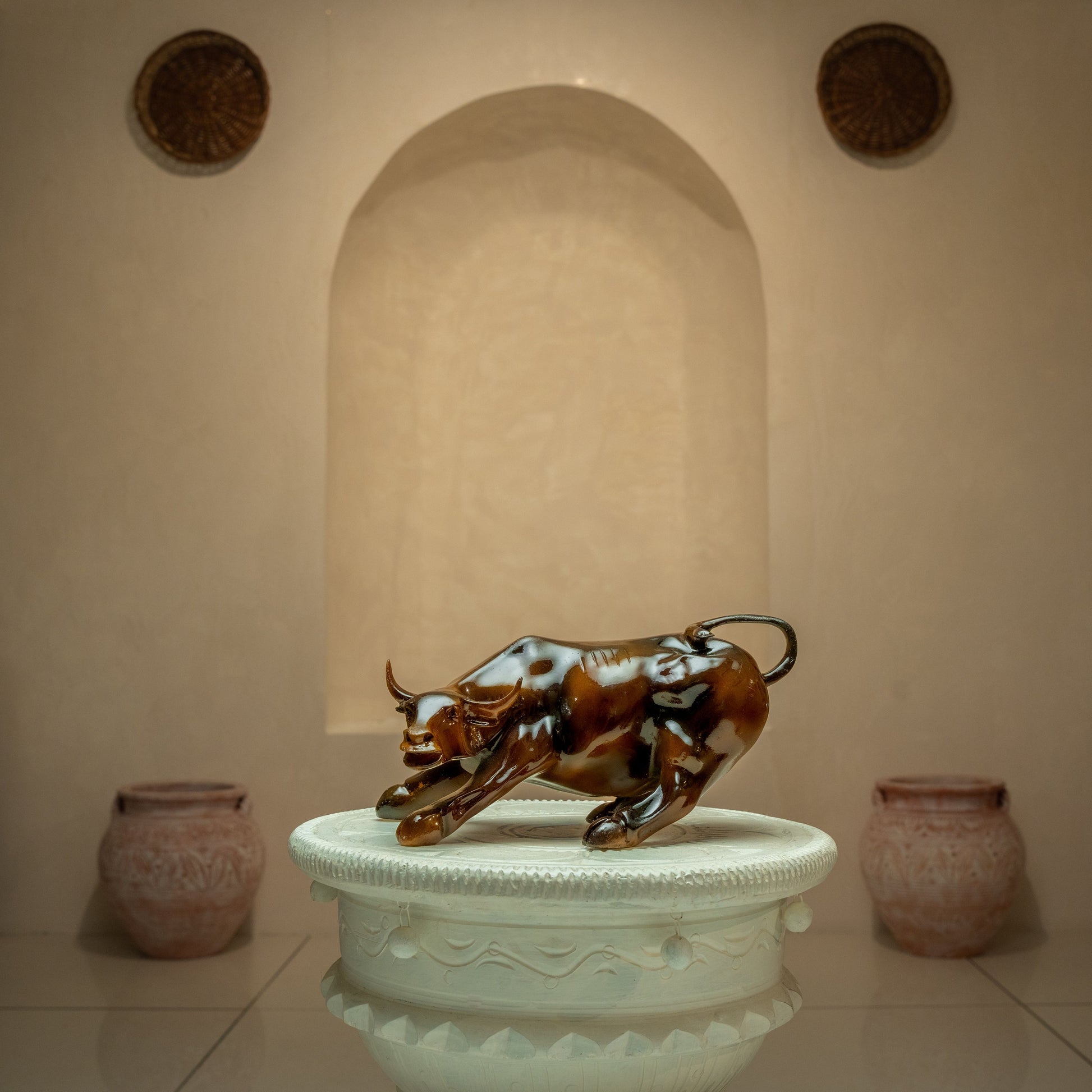 Symbolizing masculinity and kingly power, the Charging Bull has a rich history, revered as a god in ancient cultures. This exquisite figurine pays homage to the original bronze sculpture in the Financial District of Manhattan, created by the renowned Italian artist Arturo Di Modica during the 1987 Black Monday stock market crash.